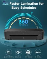 The laminator features a quick warm-up time, allowing you to start laminating in just 60 seconds.