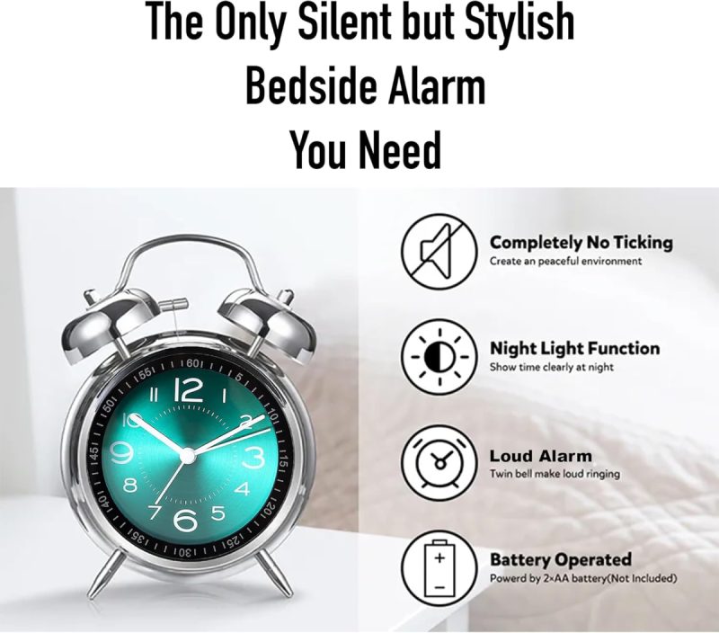 - Silent non-ticking mechanism ensures a peaceful sleeping environment
