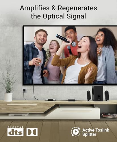- Connects one optical audio source to two devices effortlessly.