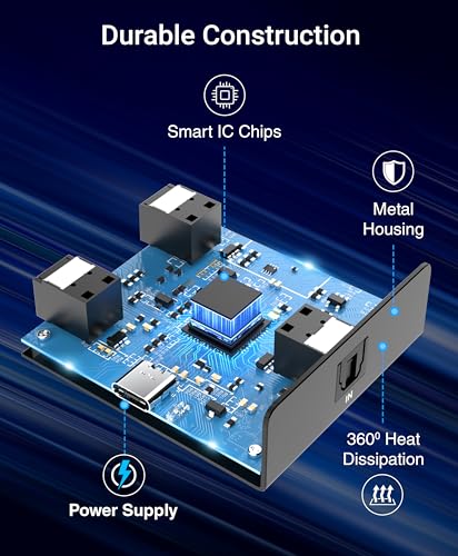 <pIdeal for a variety of setups, the splitter is compatible with amplifiers, DAC audio converters, gaming consoles like PS4 and PS5, receivers, soundbars, speakers, and TVs. Whether you’re hosting a movie night or gaming with friends, the BlueRigger Digital Optical Audio Splitter ensures that everyone can enjoy the audio experience simultaneously.