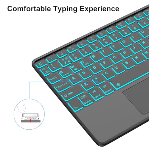 Bluetooth Keyboard with Touchpad Backlit UK Layout For iPad Pro 11 2024 – The Bluetooth Keyboard with Touchpad Backlit UK Layout for iPad Pro 11 (2024) is designed to enhance your mobile computing experience. Featuring a sleek and ergonomic design, this keyboard allows for efficient typing with its noise-free scissor-type keys, ensuring a smooth and comfortable experience whether you’re working on documents, browsing the web, or taking notes.