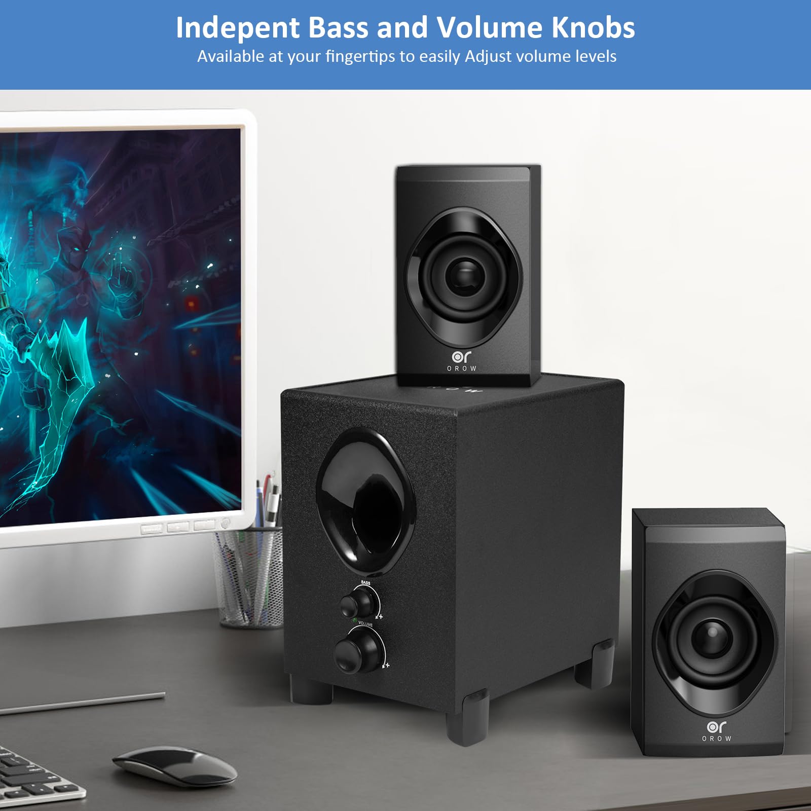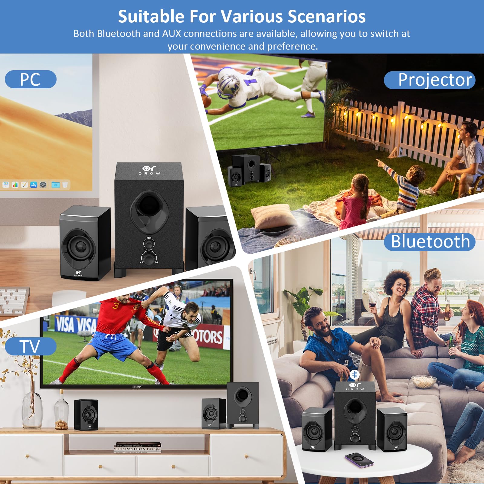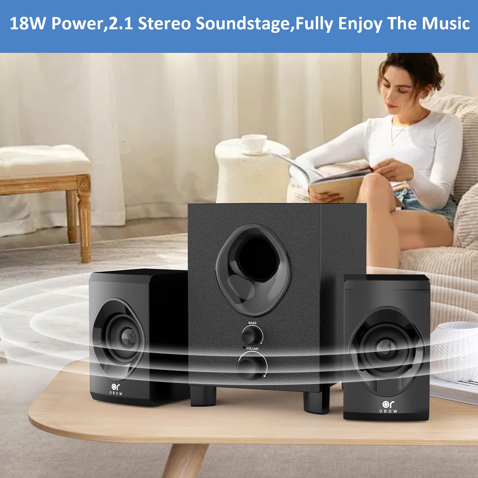 Enhance your audio experience with the OROW S213 Bluetooth PC Speakers, featuring a 2.1 subwoofer system that delivers deep bass and clear treble. Designed for desktop computers, gaming consoles, laptops, and televisions, these speakers provide a powerful 18W output, making them ideal for music lovers, gamers, and movie enthusiasts alike. The compact subwoofer fits easily under a desk or bed, ensuring you can enjoy immersive sound without cluttering your space.