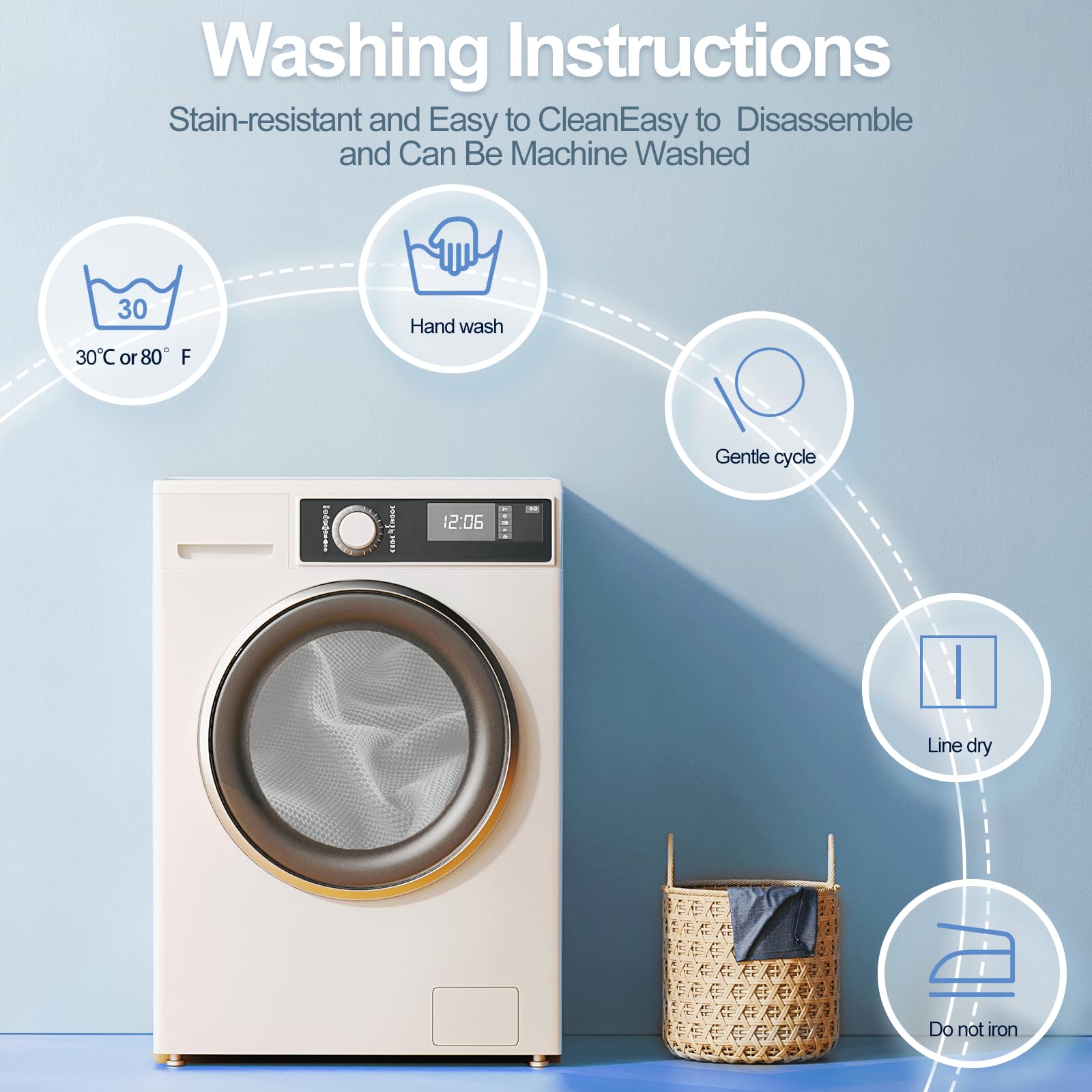 5. For best results, wash the covers in a washing machine or by hand before first use, following care instructions.