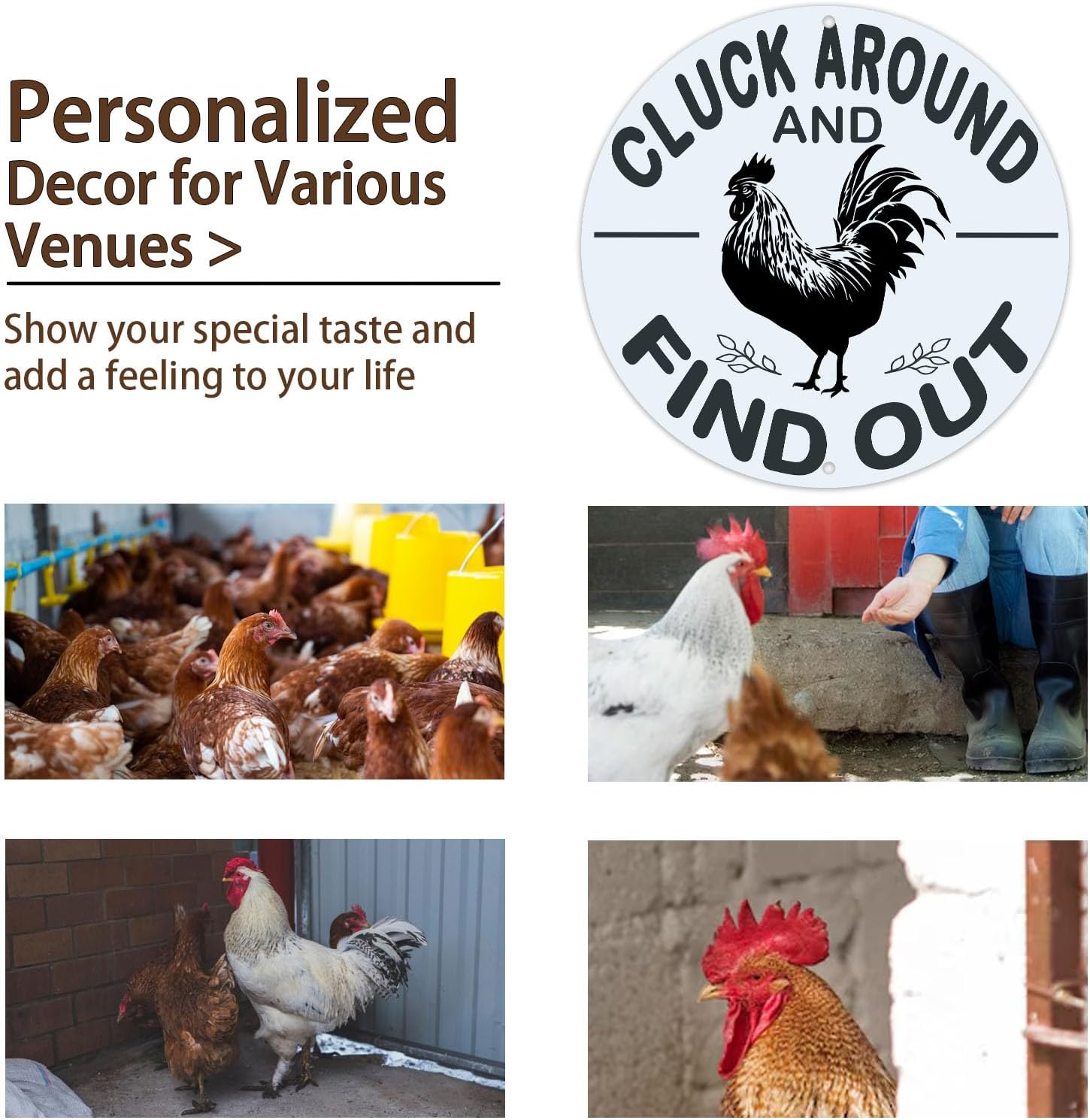 The “Cluck Around and Find Out” tin sign features a humorous design that adds a playful touch to your home or farm decor, making it a perfect addition for chicken lovers and farm enthusiasts.
