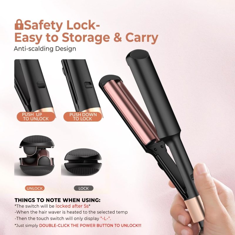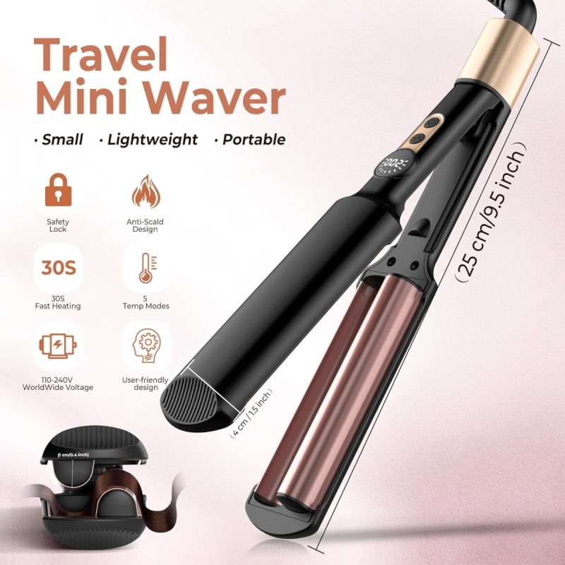This mini hair crimper offers five temperature settings ranging from 250°F to 400°F, accommodating all hair types and lengths. Its compact size makes it ideal for travel, and the safety lock feature allows for convenient storage after use. With an anti-scalding cover and internal ceramic tourmaline heating element, you can style your hair safely without the risk of burns.