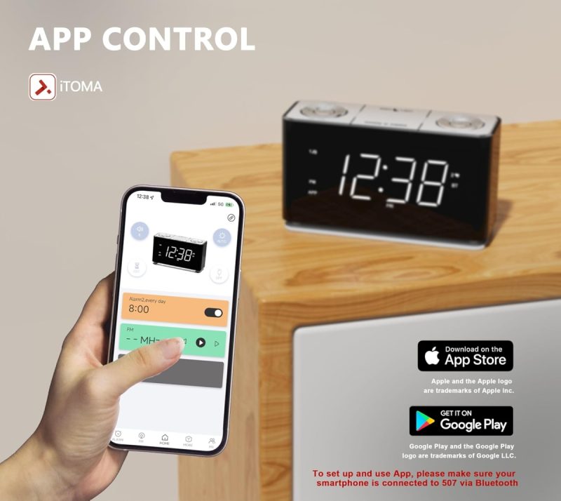 Experience crystal-clear sound: The iTOMA Clock Radio delivers exceptional audio quality, ensuring you wake up to your favorite tunes or radio stations with clarity every morning.