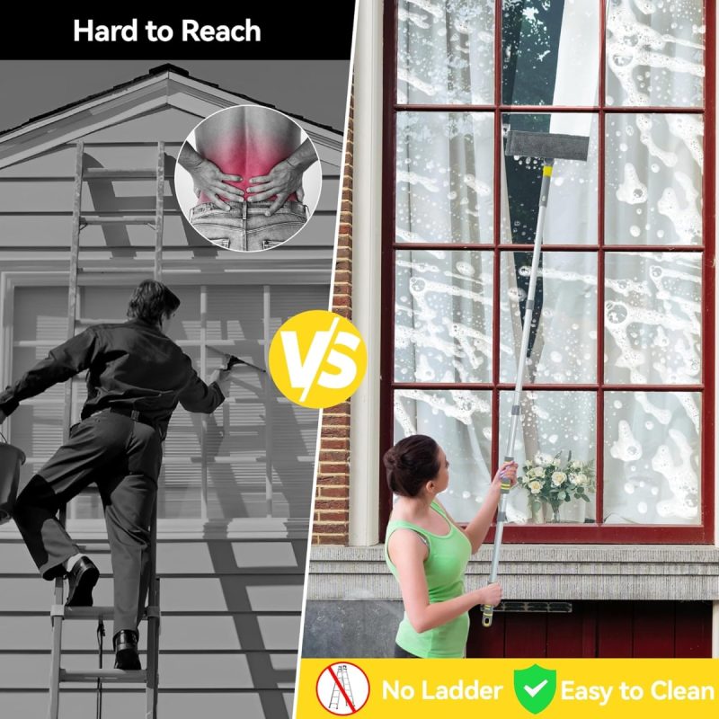 Featuring an extendable handle that reaches up to 163 cm, this cleaning kit allows you to access high windows and hard-to-reach areas without the need for ladders. The premium silicone cutting edge guarantees a streak-free finish, while the 360-degree rotating head offers flexibility for various angles. Whether you’re cleaning indoors or tackling outdoor grime, the JEHONN 3-in-1 Window Cleaning Kit Squeegee is the perfect tool for maintaining pristine glass surfaces.