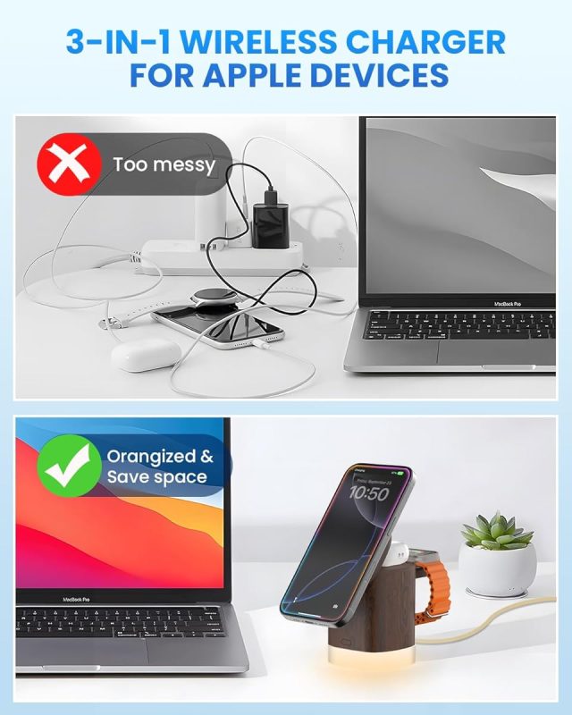I didn’t realize how much I needed this JoyGeek 3-in-1 charger until I got it. It’s like my nightstand finally grew up! I used to have three separate chargers tangled up everywhere. Now everything is neat, organized, and charging in one sleek spot.The magnetic alignment for my iPhone 16 Pro Max is spot-on, and it charges just as quickly as my original MagSafe charger. My Apple Watch snaps on easily, and my AirPods Pro sit perfectly in their spot. I love that it folds down flat, too—makes packing for trips so much easier.And the built-in night light? Such a thoughtful touch. It’s subtle but super handy during the night without lighting up the whole room.If you’re deep in the Apple ecosystem and tired of cable chaos, this is a no-brainer. Worth every single penny!