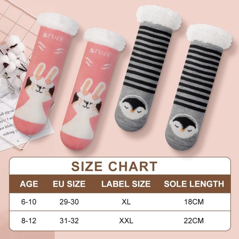 Keep your child’s feet snug and warm with the Kids Slipper Socks 2 Pairs Age 8-12 by HOTUT. Designed specifically for children in this age range, these slipper socks offer the perfect fit for comfort during those chilly indoor moments. Whether your little ones are lounging at home, enjoying a cozy movie night, or having a sleepover with friends, these socks ensure their feet stay cozy and protected.