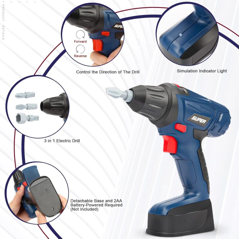 - <strong>Realistic Play Experience</strong>: The electronic drill features sound and light effects, engaging kids in realistic pretend play that captures their attention and enhances their learning experience.