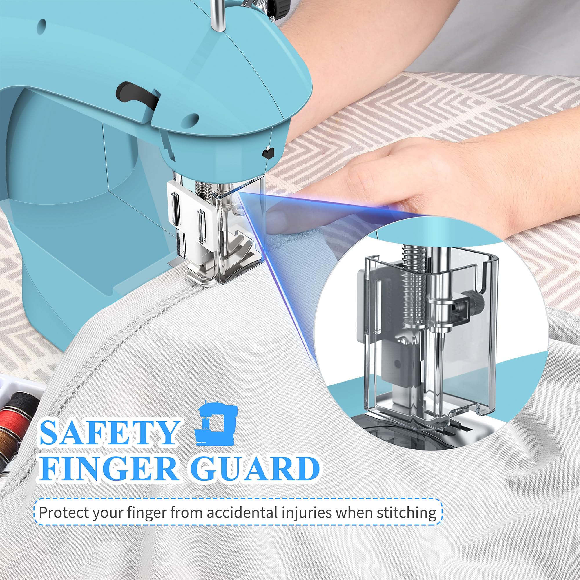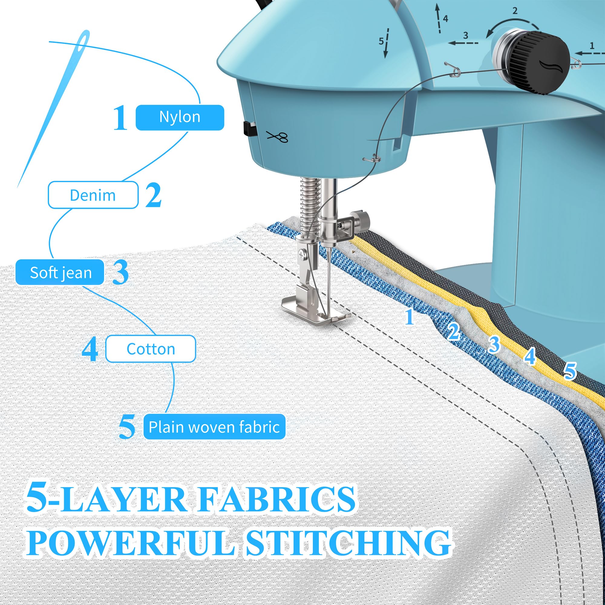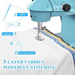 I recently bought the Mini Sewing Machine for Beginners. Here’s what I think:Pros:1. Comprehensive Set: This kit is quite impressive, featuring a variety of colorful threads with bobbins, extra needles, and even fabric pieces.2. Extension Table: The extension table with a ruler is a helpful addition, making sewing more convenient.3. Included Fabric: It’s nice that the package includes two fabric pieces (30x34cm each) to get you started.Cons:1. Poor Lighting: The built-in light is quite inadequate, making it challenging to see your work clearly.2. Limited Sewing Power: The machine struggles with sewing through 5 layers of fabric, which can be frustrating.3. Speed Control: The machine only offers fast and slow modes, and the slow mode isn’t as slow as you might expect.4. Batteries Not Included: It’s disappointing that the set doesn’t come with batteries, so be prepared to have some on hand.5. Single Stitch Option: Having only one stitch pattern limits creativity and versatility.6. No Back Stitch: The absence of a back stitch feature means you’ll have to manually turn the fabric, which can be time-consuming.7. Low-Quality Accessories: The scissors and stitch ripper included in the kit are of poor quality.In summary, it is a decent starter kit with a good selection of accessories. However, it does come with some limitations, like poor lighting and struggles with thicker fabrics. It’s suitable for basic sewing tasks but may not meet the needs of more advanced sewers.