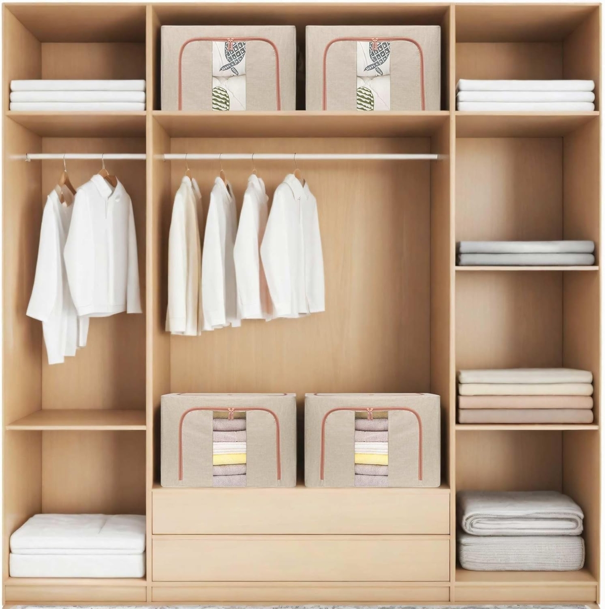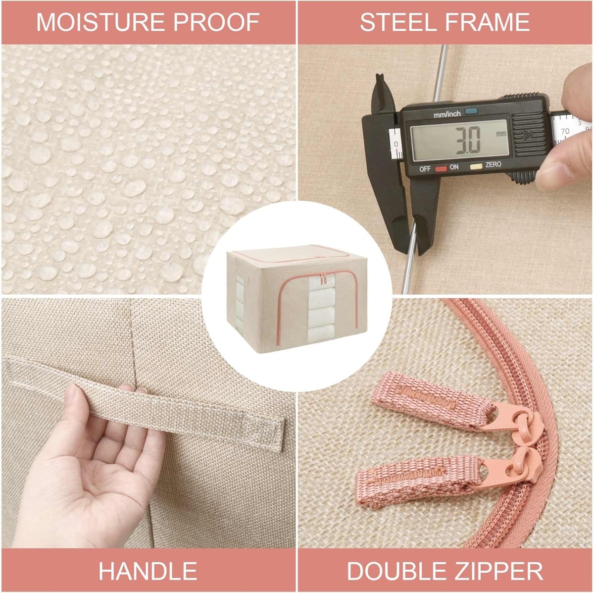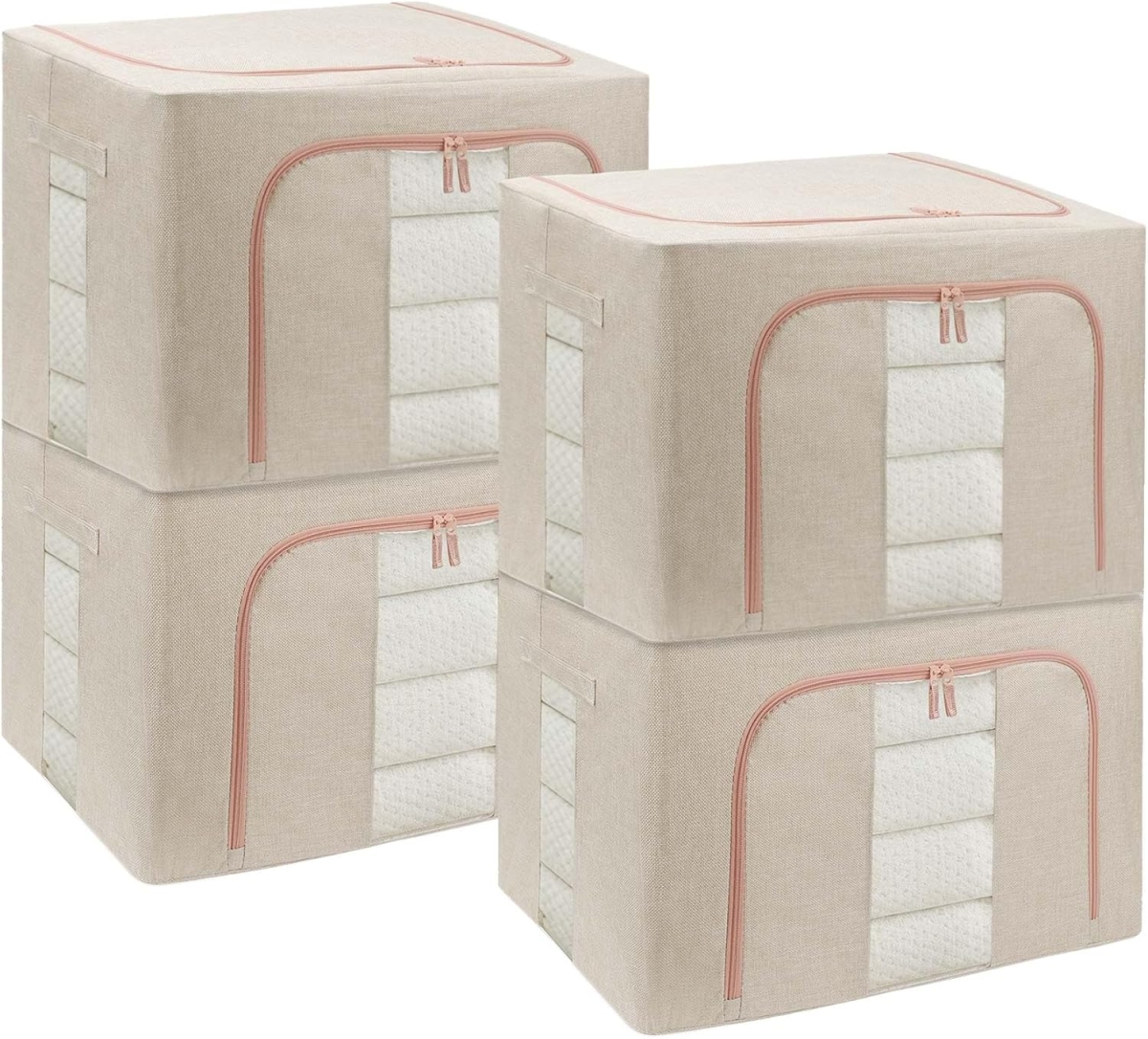 Luxury Linen Clothes Storage Bins 4 Pack Foldable Front Opening Zip Metal Frame Overview
