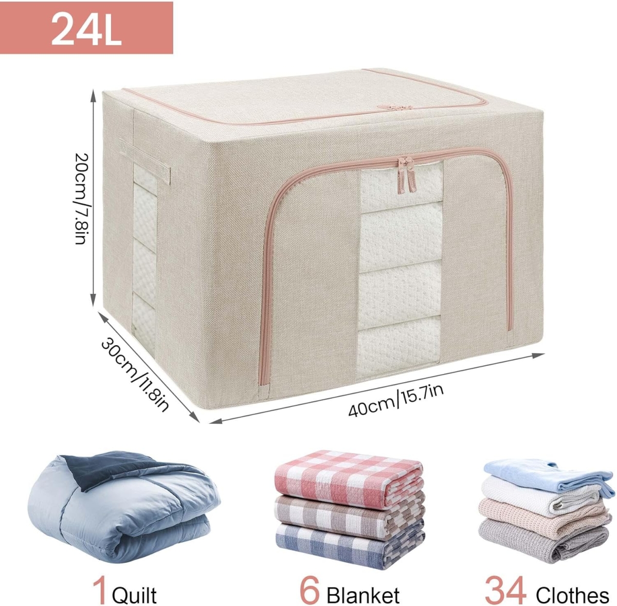 Luxury Linen Clothes Storage Bins 4 Pack Foldable Front Opening Zip Metal Frame – Introducing the Luxury Linen Clothes Storage Bins 4 Pack, designed to help you organise your space efficiently. Made from premium linen cloth, these storage bins are not only durable but also moisture-proof and dust-proof, making them an excellent choice for keeping your belongings safe and tidy. The transparent section allows for easy visibility of contents, while the label pocket helps you keep track of what’s inside, ensuring quick access when needed.