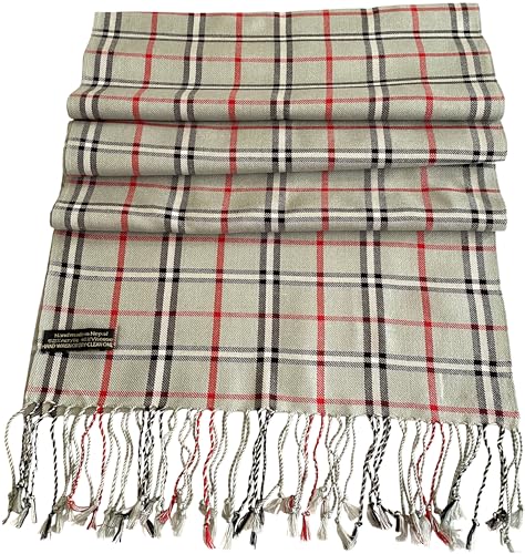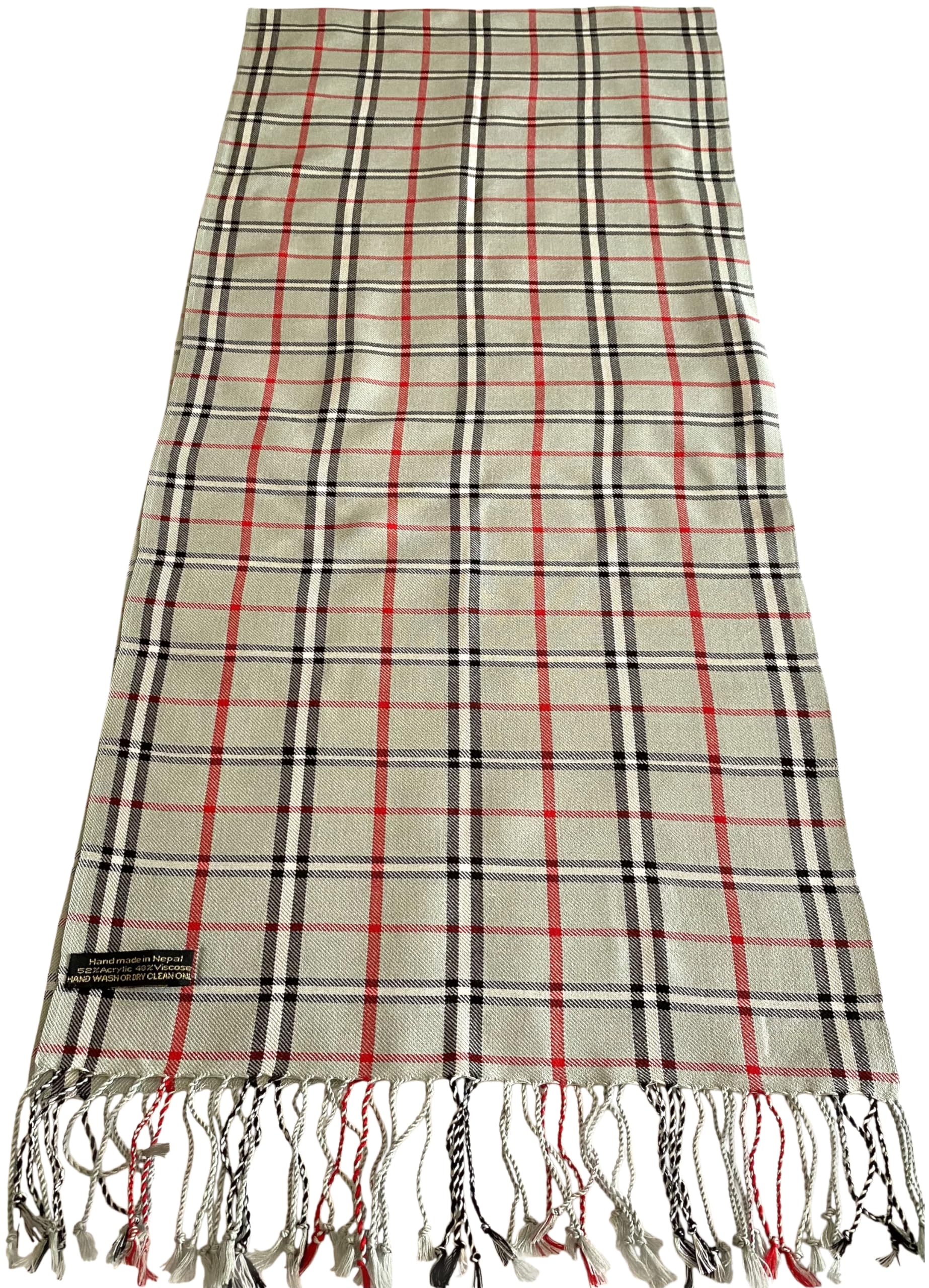 Mens Nepalese Tartan Scarf CJ Apparel Handmade in Nepal – Discover warmth and style with the Men’s Nepalese Tartan Scarf by CJ Apparel. Handmade in Nepal, this scarf features a high-quality tartan design crafted from a soft and lightweight blend of 52% acrylic and 48% viscose. With dimensions of 66 x 12 inches (168 x 30 cm) and a 3-inch (8 cm) fringe at each end, it offers versatility in wear, allowing you to use it as a scarf, head wrap, or face cover.