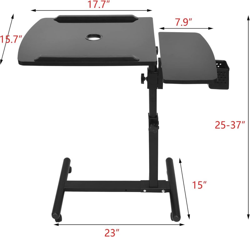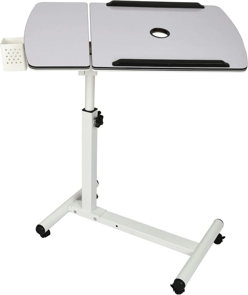 The Over Bed Laptop Table comes fully equipped with a convenient side drawer to store pens, notebooks, or small gadgets, keeping your workspace organized and clutter-free. The smooth-rolling casters allow for easy mobility, so you can move the table effortlessly from room to room.