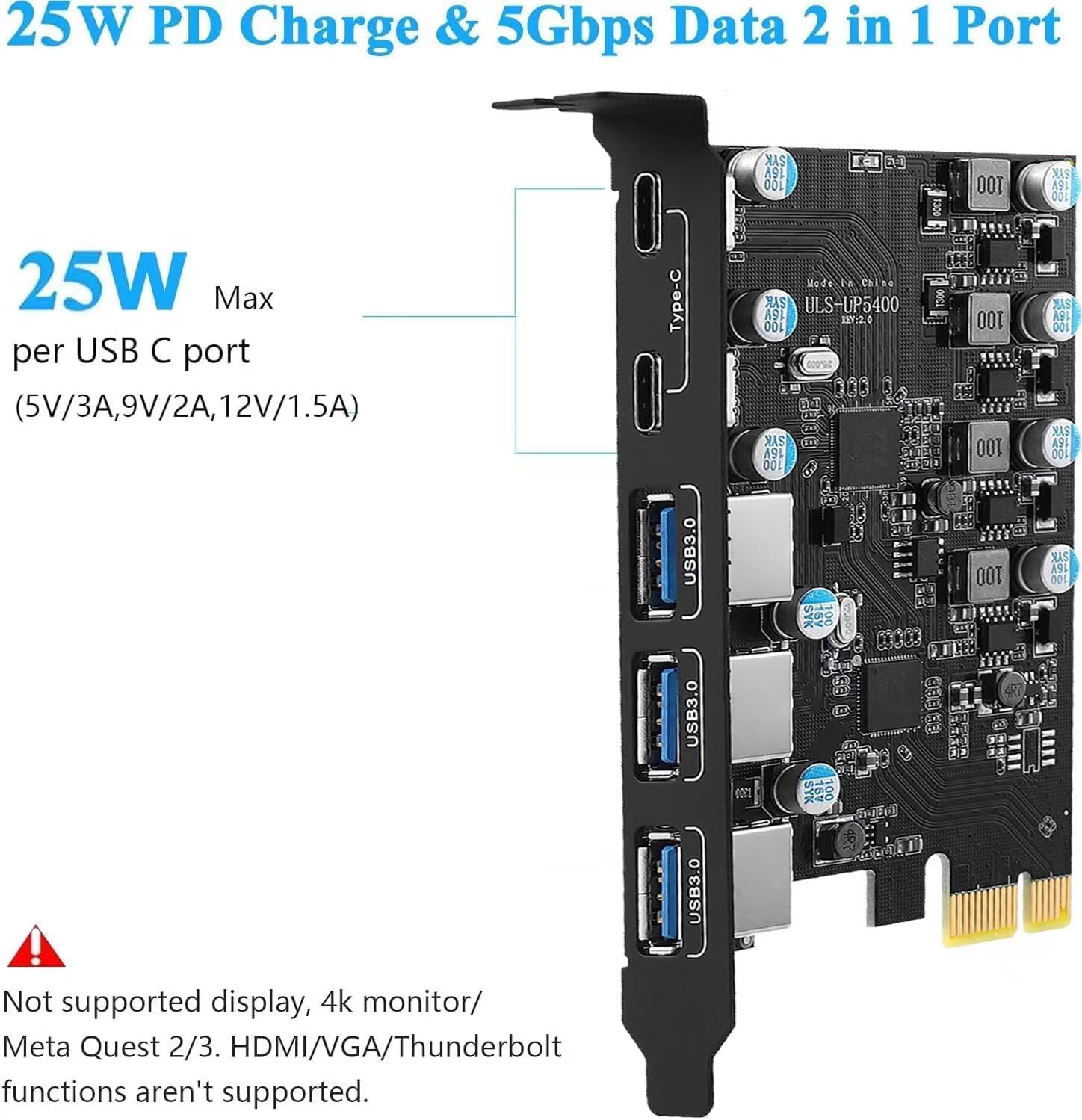 The front of my trusty desktop PC had begun to resemble the back of a 1990s television cabinet—a chaotic jungle of hubs and adapters. With a distinct lack of modern USB-C ports, I decided it was time for some minor surgery.This PCIe card was the chosen transplant. The installation process was surprisingly painless and far less intimidating than it sounds. I powered down the PC, opened the case, found a spare PCIe slot, and clicked the card into place. That was it. There were no fiddly extra power cables to connect, which was a huge relief.On rebooting, my Windows 10 system recognised it instantly without any fuss or need for drivers. Suddenly, my ageing machine was catapulted into the present day. I now have two powerful 25W USB-C ports that can fast-charge my phone, and three extra high-speed USB-A ports to handle everything else. The days of daisy-chaining hubs are over. It even managed to power my friend’s power-hungry VR headset.For a modest cost, this card is a superb and straightforward way to add modern, high-speed connectivity to an older desktop, clearing up desk clutter and extending its useful life.Pros:- A very simple way to add 3 fast USB-A and 2 powerful USB-C ports to a desktop PC.- The USB-C ports deliver up to 25W of power each, suitable for fast-charging modern devices.- True plug-and-play installation on modern operating systems (Windows 10/11, macOS).- Draws all its power from the PCIe slot, with no need for an additional power cable.Cons:- Requires a spare PCI Express (PCIe) slot on your computer’s motherboard.- Users of older operating systems like Windows 7 will need to install drivers manually.Useful Tips & Technical FactsTip: Before purchasing, open your PC case to confirm you have a spare PCIe slot (these can be x1, x4, x8, or x16 in size).The card provides a total of 5 USB 3.0 ports, all capable of up to 5Gbps transfer speeds.I hope you found this review helpful or at least entertaining!