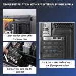 This PCIe card is decent quality and good value. It’s easy to self-install, you don’t need to be a pro. It quickly upgrades and expands the ports on a PC to suit the latest peripherals that run off USB-C or USB 3.0.