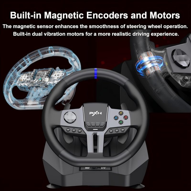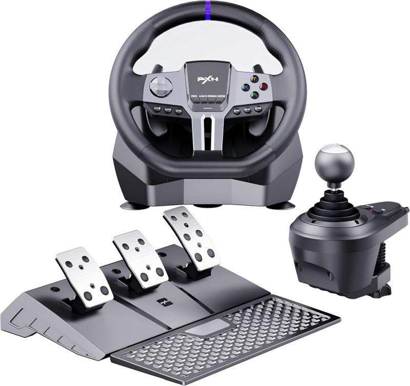 The dual vibration motors deliver authentic feedback, making every turn and bump feel lifelike, while the included responsive pedals and 6+R gear lever give you comprehensive control over your vehicle. Whether you’re racing against friends or honing your skills, this kit ensures that every session is filled with excitement and precision. Lightweight and compact, the PXN V9 GEN2 Racing Wheel Kit is also easy to transport, making it ideal for gamers who want to take their racing adventures on the go.