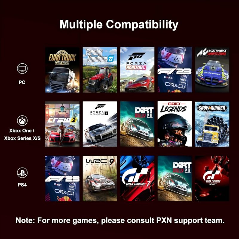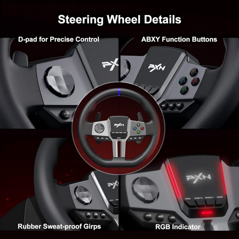 - Customize your gaming experience with adjustable steering sensitivity and button configurations via the PXN Wheel APP.