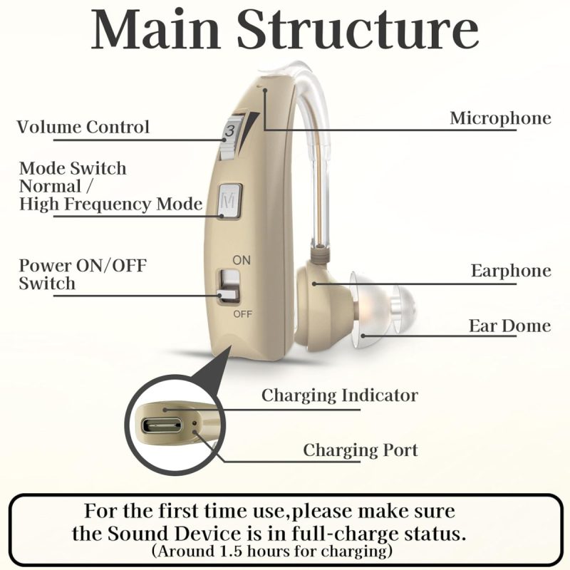 - Ensure the Rechargeable Hearing Amplifier is fully charged before use.