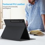 The Samsung Galaxy Tab S10 Ultra S9 Ultra 14.6 Case Pen Holder Folio Stand in black is designed to provide robust protection for your tablet while maintaining a sleek and stylish appearance. This case is compatible with both the Samsung Galaxy Tab S9 Ultra and S10 Ultra, making it an ideal choice for users who want to safeguard their devices without compromising on functionality.