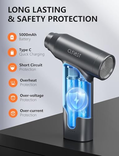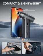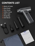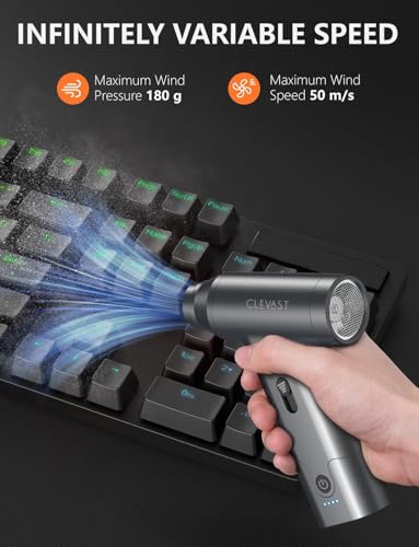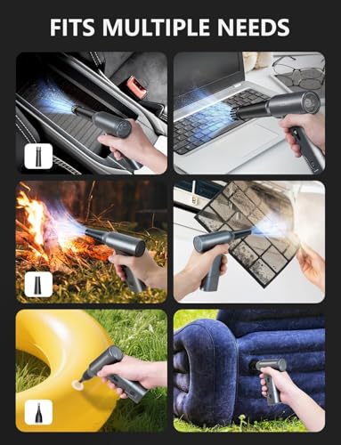 ✅ What It Does Well💨 Strong airflow for its size• Up to ~110,000 RPM motor• Easily clears dust from:• PC fans• keyboards• vents• Many users say it’s surprisingly powerful for a handheld unit 🔋 Rechargeable & eco-friendly• Built-in 7800mAh battery• Around 30–40 minutes runtime• Replaces disposable air cans (cheaper long-term and less waste) 🧰 Versatile 3-in-1 design• Air blower (main use)• Mini vacuum (for crumbs/dust)• Inflator (for small items)• Includes multiple nozzles and brushes 💡 Handy features• LED light helps in dark areas (inside PC cases, under desks)• Lightweight (~1.5 lbs), easy to hold and move around