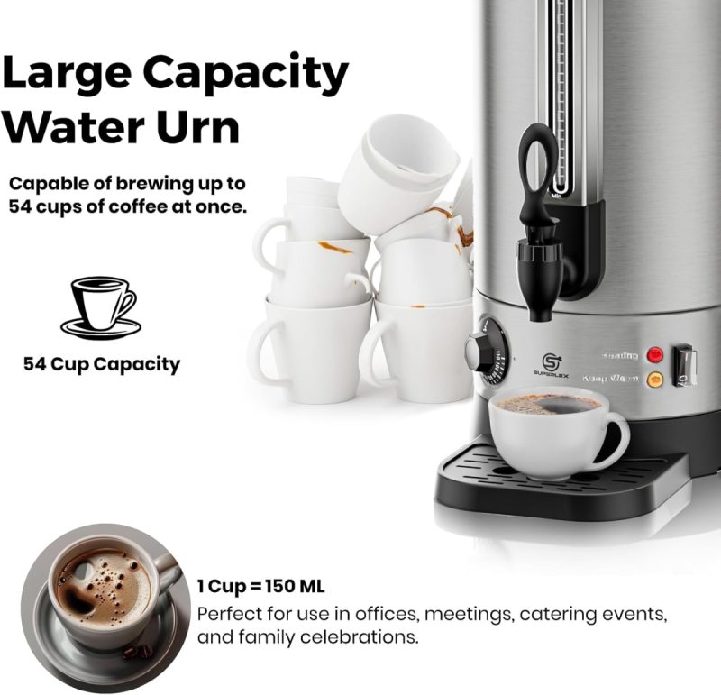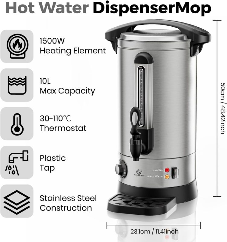 The SUPERLEX Water Boiler Electric Catering Urn is an efficient solution for boiling large quantities of water quickly, making it ideal for events, gatherings, and hospitality settings. With a generous 10-litre capacity, this urn ensures that guests have access to steaming hot beverages like tea, coffee, or hot chocolate, perfect for catering services, coffee shops, or family reunions.