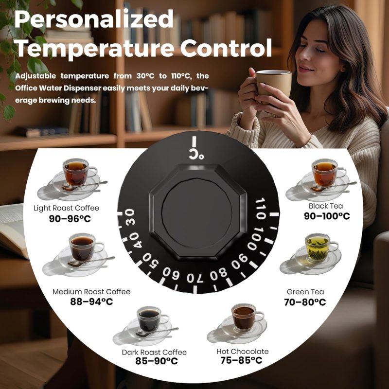 - Once the water is ready, use the convenient single-hand operation to dispense hot beverages safely.