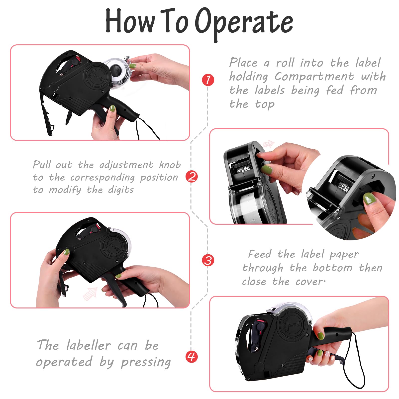 - Ensure the Swift M8-22 Price Gun is loaded with the appropriate 22×12 mm Swift labels.