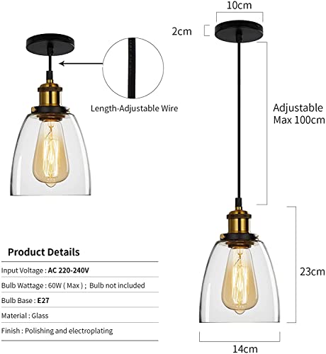 Vintage Glass Pendant Light Clear Lampshade Industrial Ceiling Light Fitting – Illuminate your space with the Vintage Glass Pendant Light, a stunning addition that combines classic and modern design elements. Featuring a clear glass lampshade in a cone shape, this industrial ceiling light fitting provides a glowing light direction, making it perfect for creating a warm and inviting atmosphere in any room.