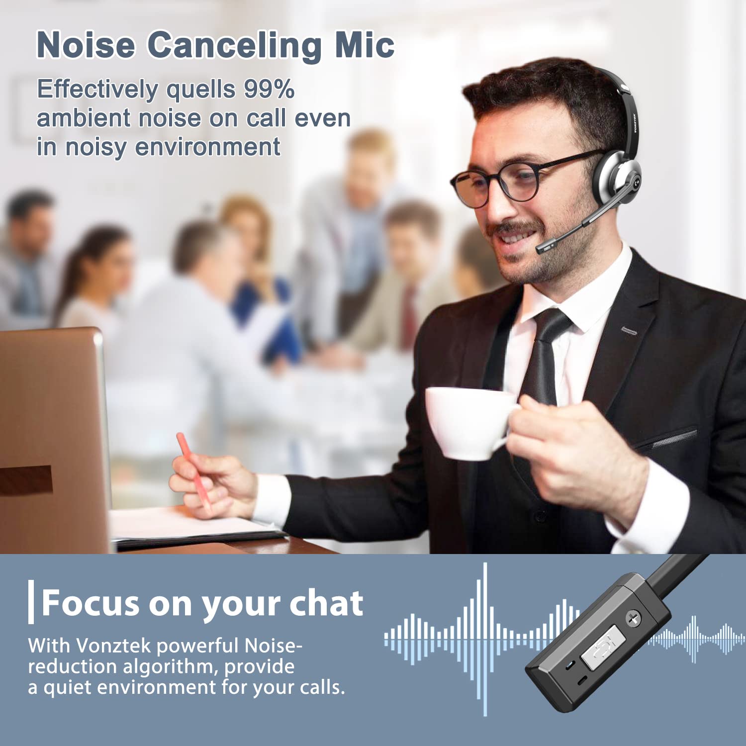 Wireless Headset with Mic Noise Cancelling Bluetooth USB Dongle Mute Black – Experience crystal-clear audio with our Wireless Headset featuring noise cancelling