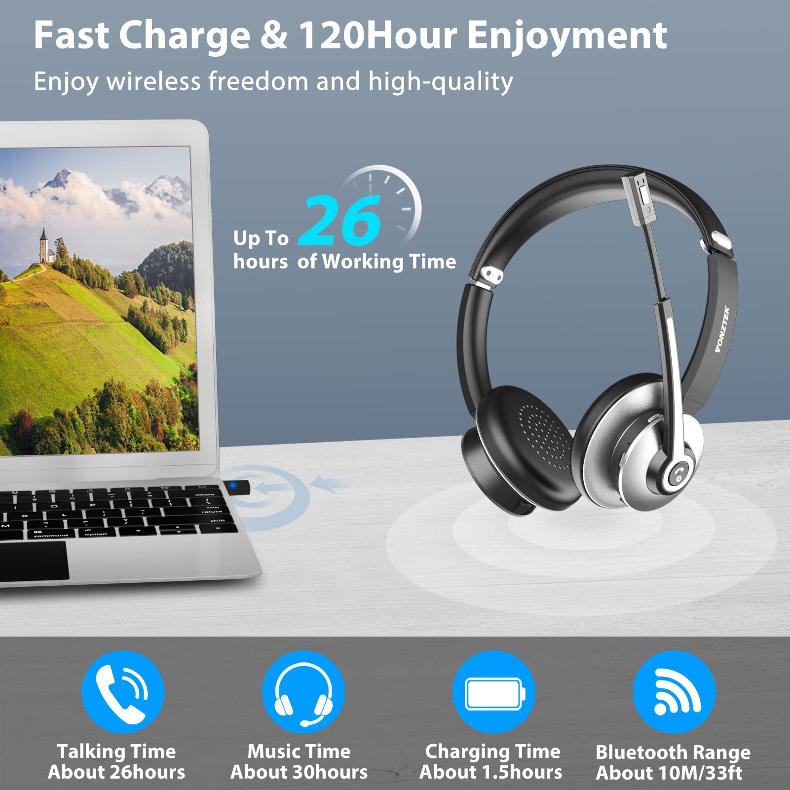 Wireless Headset with Mic Noise Cancelling Bluetooth USB Dongle Mute Black Wirel