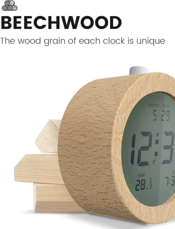 10 reviews for Wooden Digital Alarm Clock – Silent LCD Clock with Backlight, Temperature, Date Display, Snooze Function & Battery Powered for Bedrooms